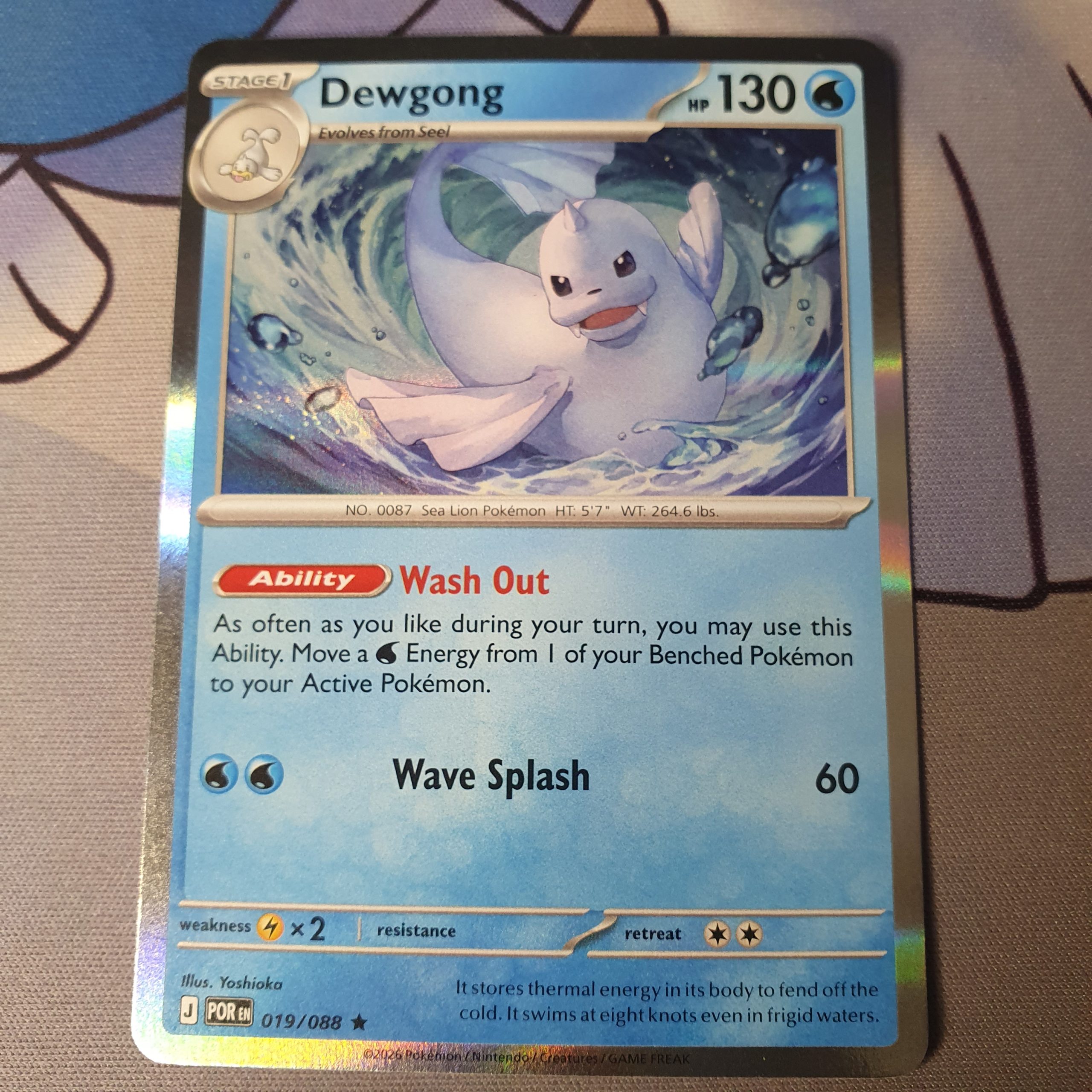 Card Text:Ability: Wash Out As often as you like during your turn, you may use this Ability. Move a Water Energy from 1 of your Benched Pokémon to your Active Pokémon.