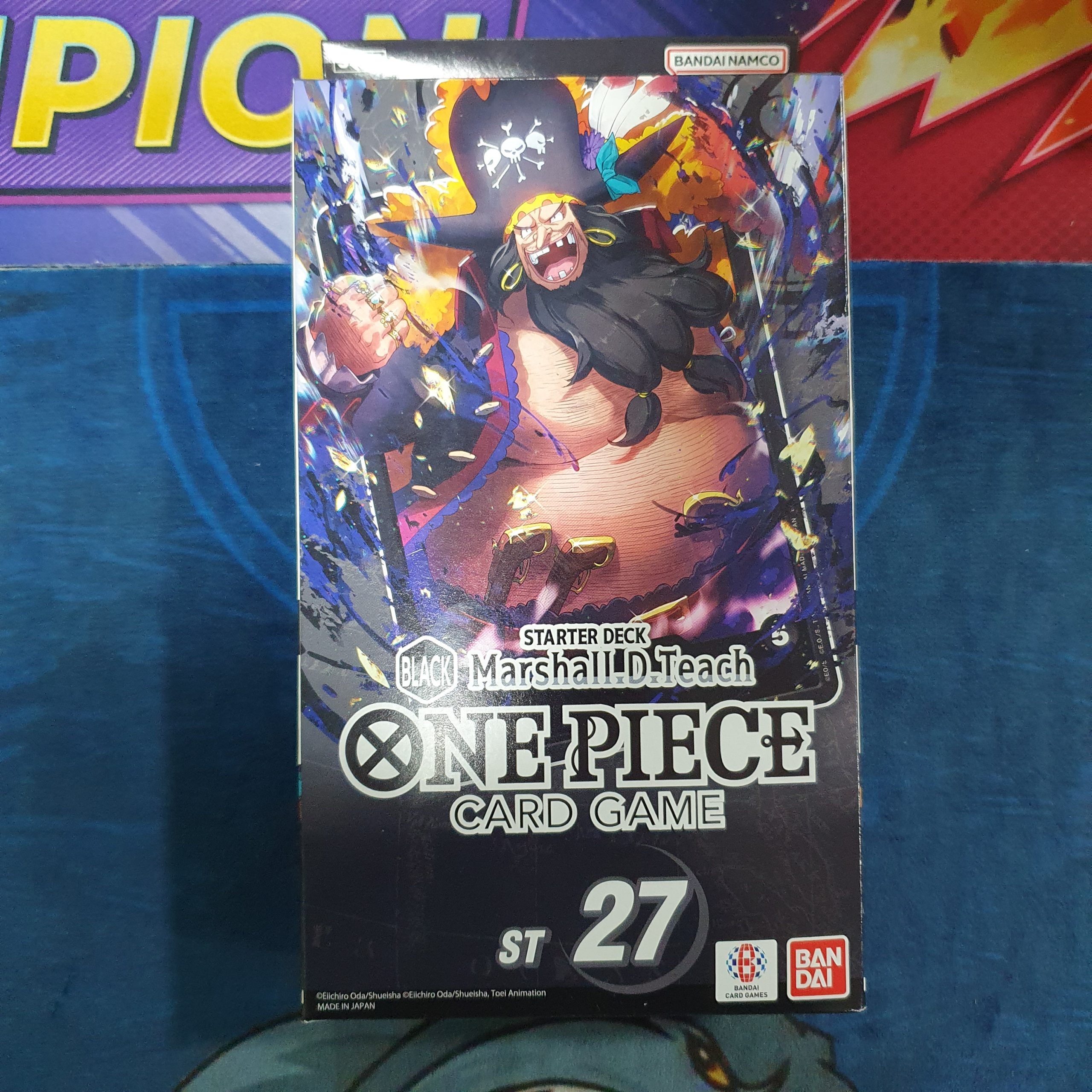 El mazo inicial [ST-27]: Black Marshall D. Teach se centra en una estrategia de control agresiva y «anti-meta» con un mazo monocolor negro. Gira en torno al líder Marshall D. Teach [OP09-081], que descarta una carta para negar los efectos [Al Jugar] del oponente. Destaca por deshabilitar las estrategias del oponente y usar la recursión basada en el descarte.