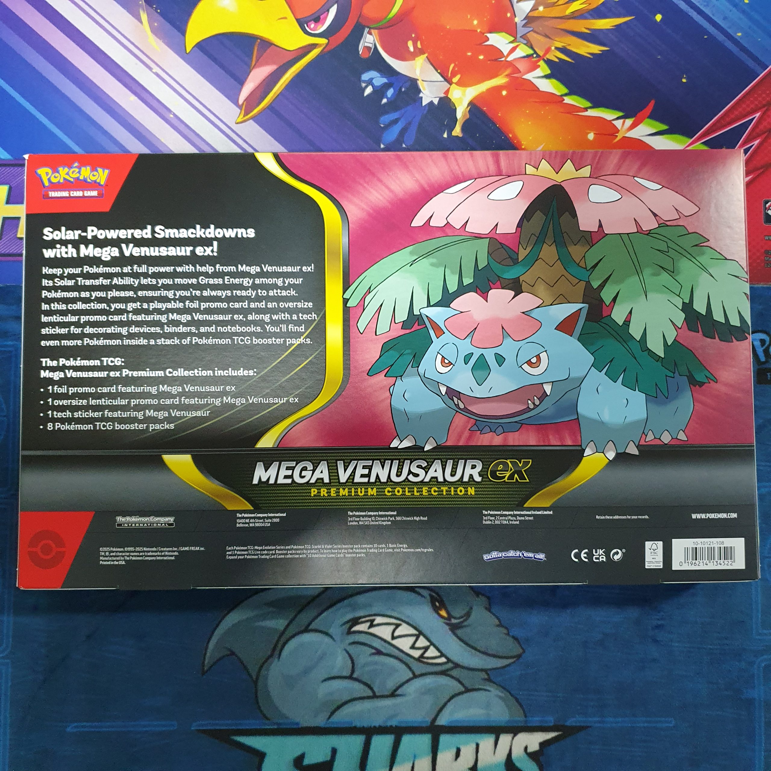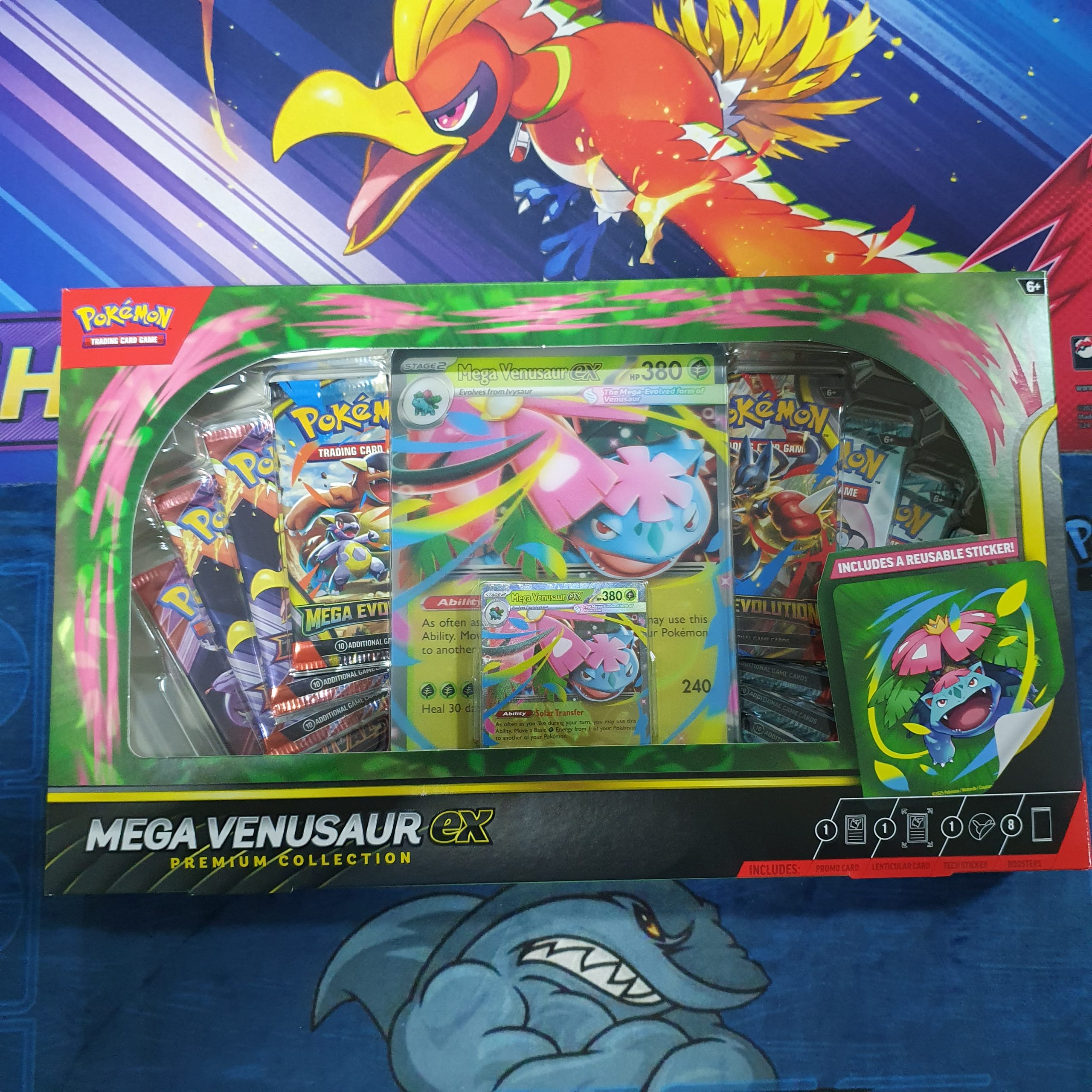 ¡Potencia al máximo a tus Pokémon con la ayuda de Mega-Venusaur ex! Su Habilidad Transferencia Solar te permite mover la Energía Planta entre tus Pokémon como tú quieras para poder atacar en cualquier momento. En esta colección, conseguirás 1 carta promo holográfica lista para jugar y 1 carta promo lenticular jumbo, ambas de Mega-Venusaur ex. También encontrarás 1 calcomanía para que decores tus dispositivos electrónicos, carpetas o cuadernos, así como muchos más Pokémon en el montón de sobres de refuerzo de JCC Pokémon que vienen incluidos.